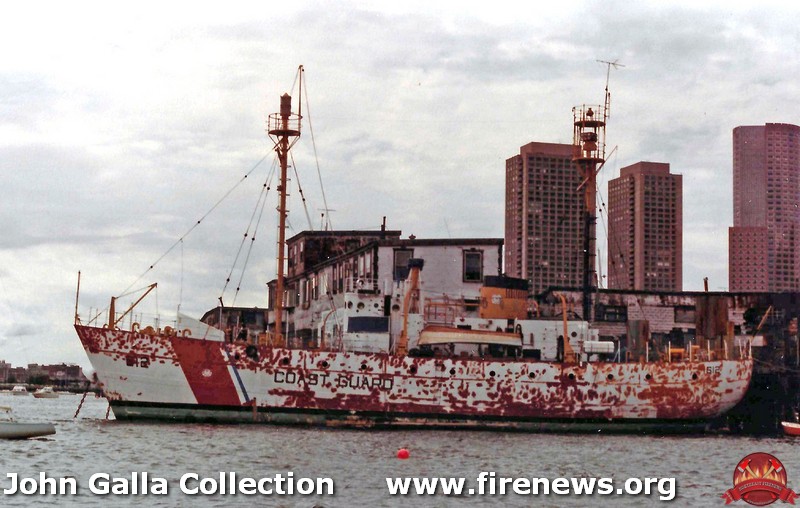 | Decommissioned Lightship Nantucket (612) in Boston in July of 1987 prior to being sold to a private party. |