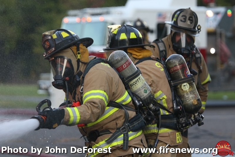Simsbury, CT Firefighters participating in a live fire drill at the training center in training center in Weatogue. |