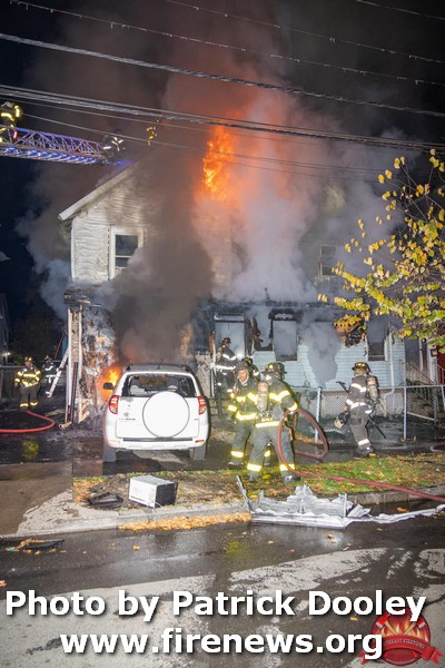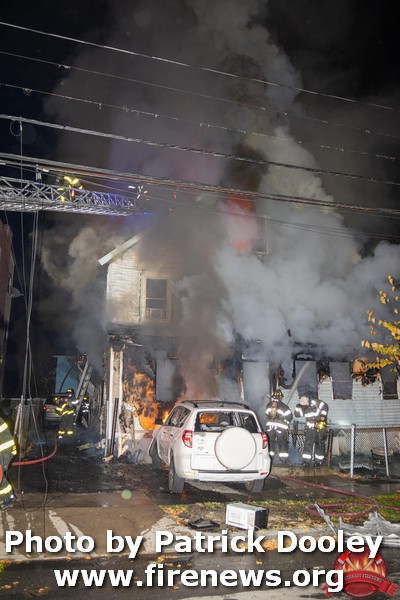 fully involved rear yard house at 258 Capen Street. The fire extended to a small exposure garage and the house collapsed with 10 minutes of their arrival. |