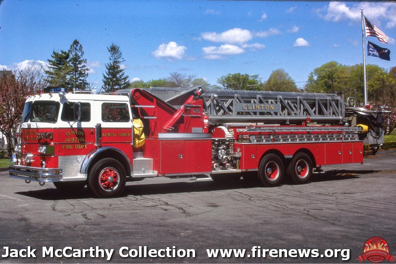 | Clinton, CT ex Ladder 971- 1975 Sutphen 1250/300 85’ MM tower. |