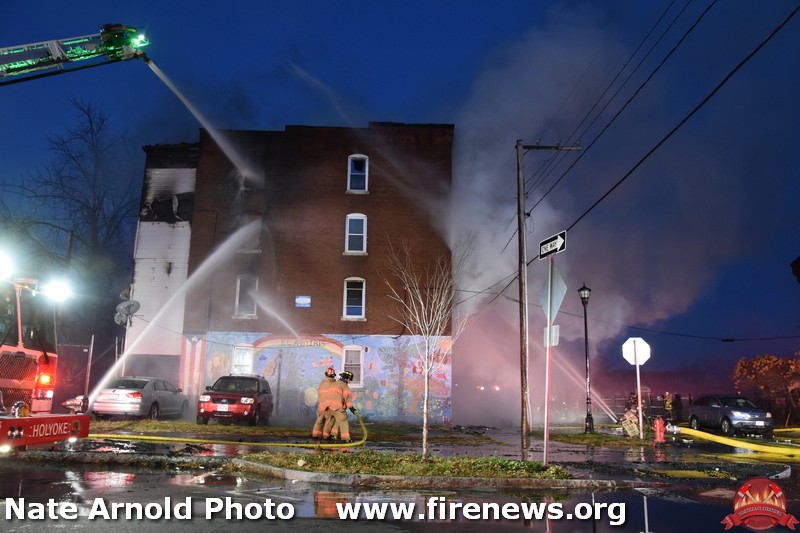 | Holyoke, MA 12/1/25- 3 alarm building fire at 127-131 Roberto Clemente St. The next photo is also from this fire. |