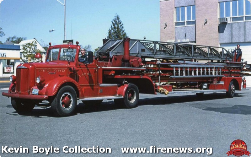 | Medford, MA ex Ladder 3- 1945 Mack LS/1938 American LaFrance 100' TDA. |