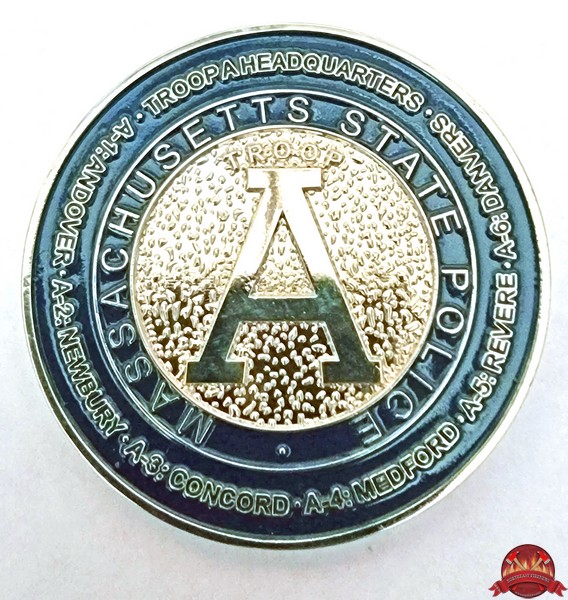 | Mass State Police Troop A challenge coin. |