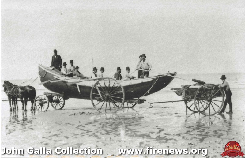 | Vintage photo of a US Life Saving surf boat with Joshua James. |