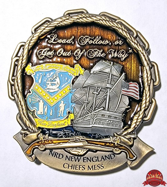 | US Navy New England Chief Petty Officer's Mess challenge coin. |