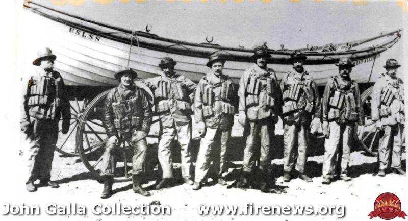 | Vintage photo of Joshua James (left) and his crew with the US Life Saving Service, a service that would eventually merge with the US Coast Guard. He is credited with saving over 500 lives. |