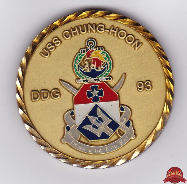 | US Navy destroyer USS Chung Hoon DDG-93 challenge coin. |