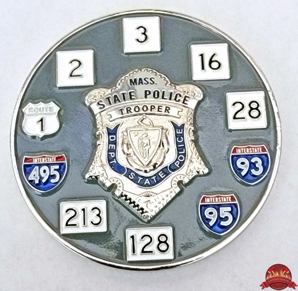 | Mass State Police Troop A challenge coin. |