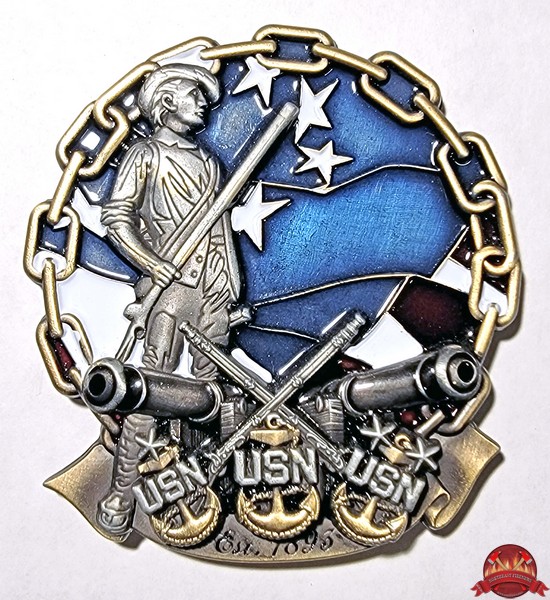 | US Navy New England Chief Petty Officer's Mess challenge coin. |