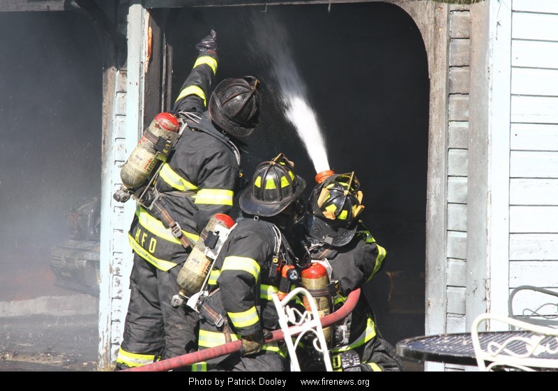 fully involved rear yard house at 258 Capen Street. The fire extended to a small exposure garage and the house collapsed with 10 minutes of their arrival. |