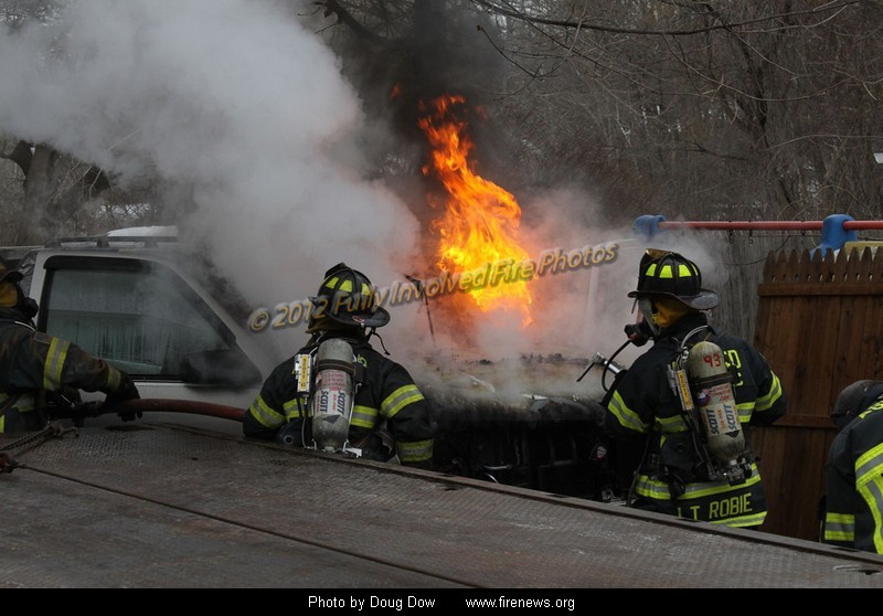 fire involving a pickup and a boat |