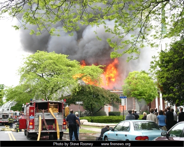 6 alarm fire at the Faith Lutheran Church, 311 Broadway |